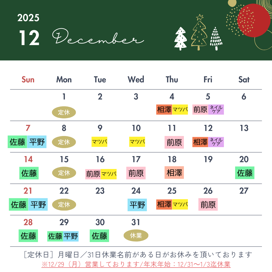 年末▶12/30迄※12/29(月)特別営業日の為通常通り営業しております